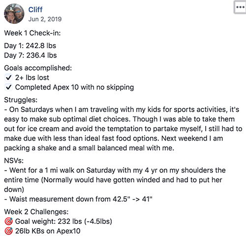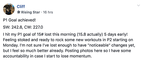 “The positive attitude and encouraging words from my Fit Father Brotherhood have kept my spirits high even when the scale was being stubborn.”