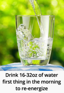 When you first wake up in the morning, you might be dehydrated from 7-9 hours of sleeping without fluids. Instead of reaching for breakfast foods, choose water to jump-start your metabolism and boost your energy.