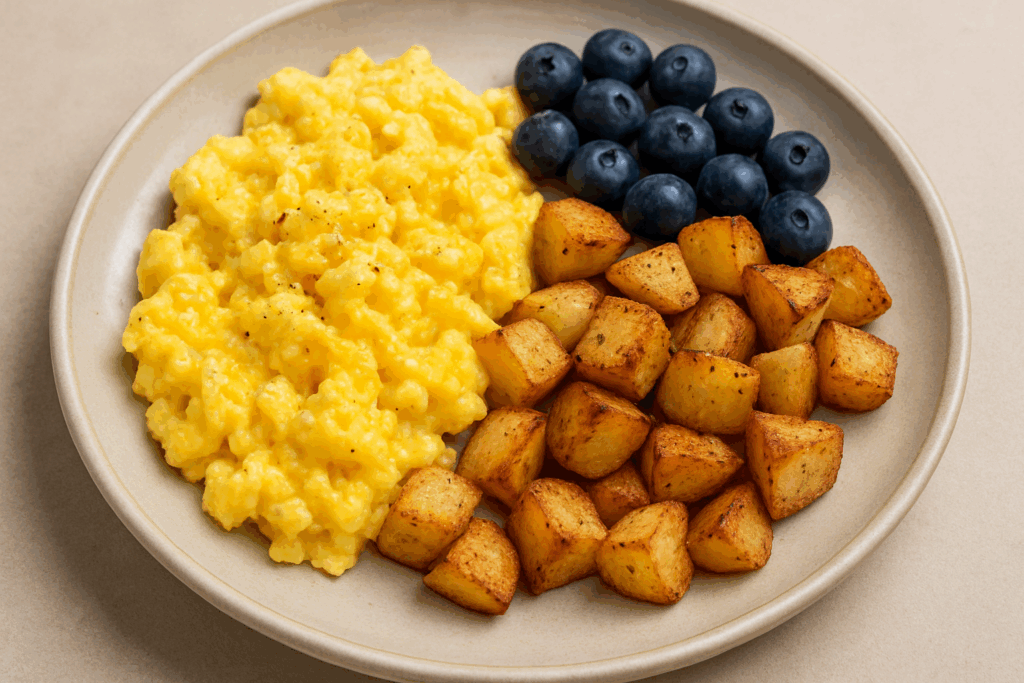 One thing that has worked very well for me personally over the years is eating the same breakfast almost every day. I make 3-4 scrambled eggs with fresh salsa, blueberries, and some potatoes cooked in a pan with a little olive oil and spices. It’s simple and healthy and takes all the guesswork out of eating when I wake up.